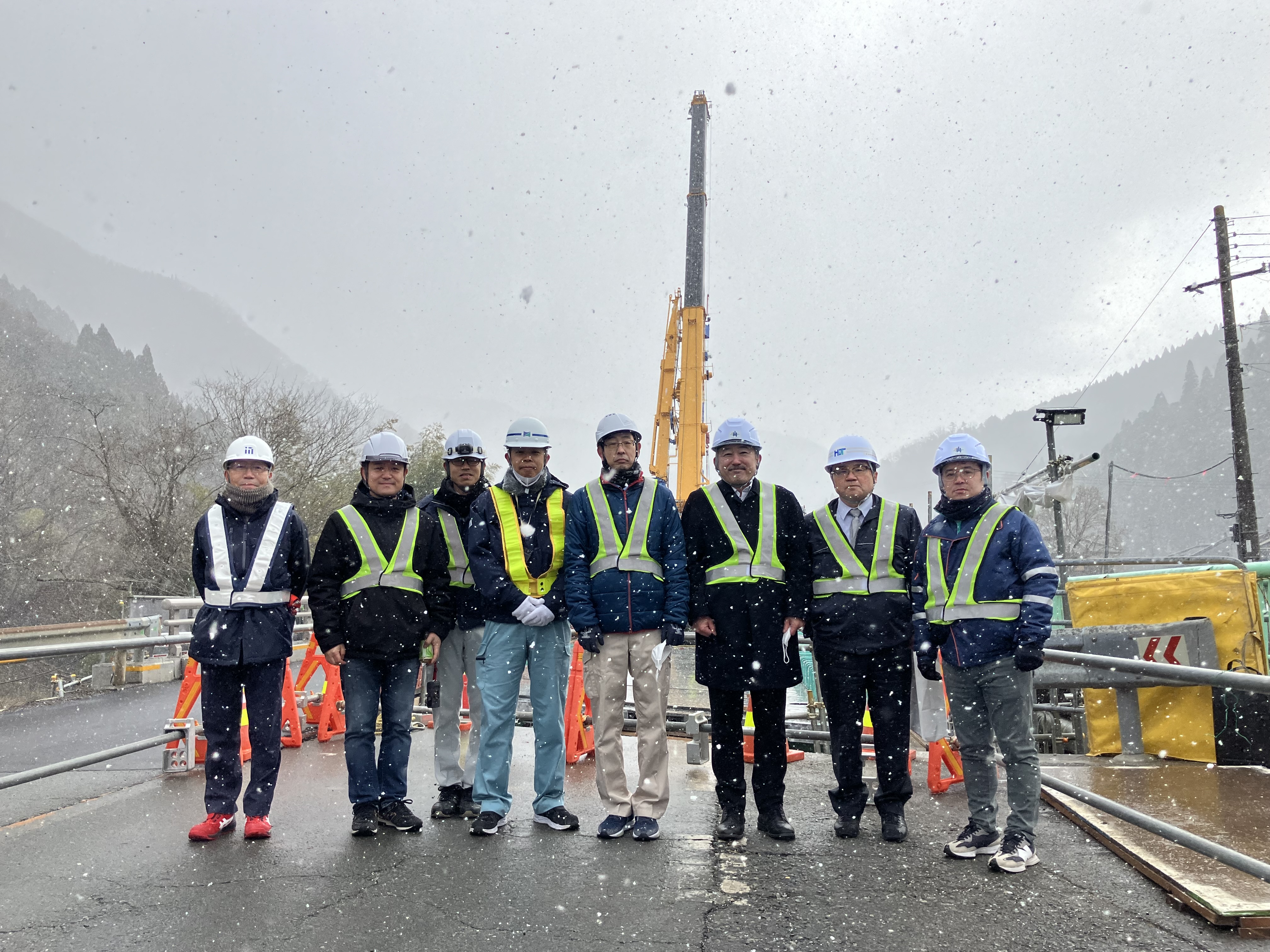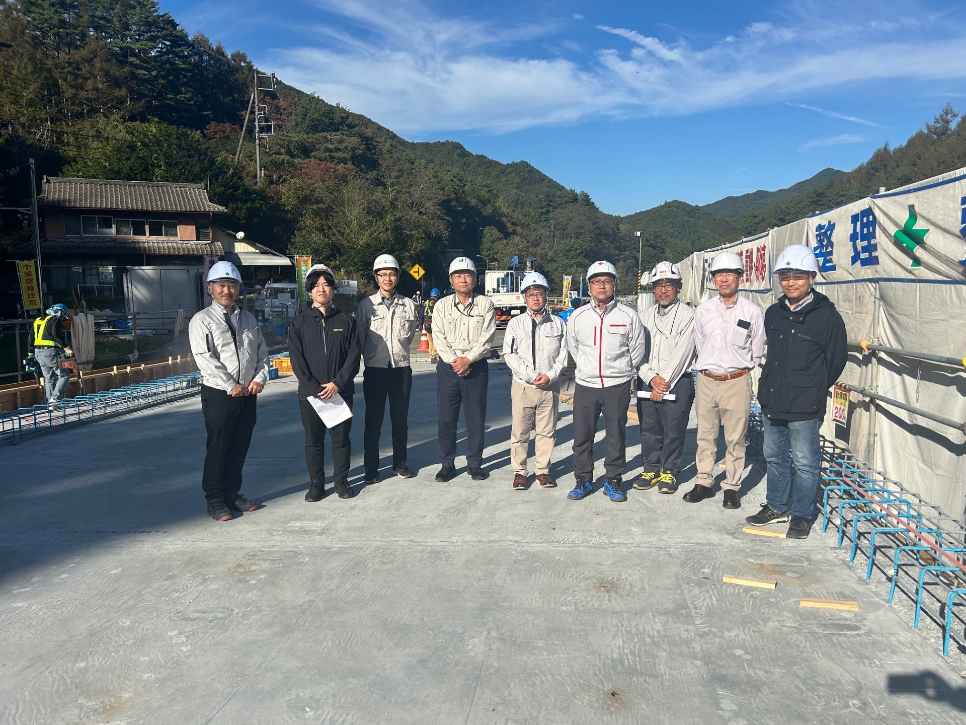 UFC床版の現場施⼯について⾒学会を開催しました。国道153号萱の橋橋梁補修⼯事にて、内⽥裕市委員⻑、三⽊朋広幹事⻑と8名の会員に参加頂きました。