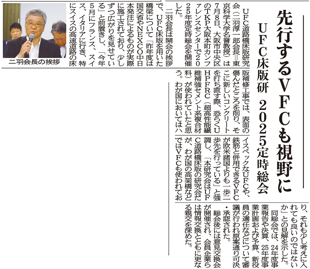 2025年度 定時総会が開催され、⼆⽻淳⼀郎会⻑より「VFCも視野に⼊れた活動を展開していく」とのご挨拶がありました。定時総会の模様が各種新聞並びにWEBサイトにて取り上げられました。
